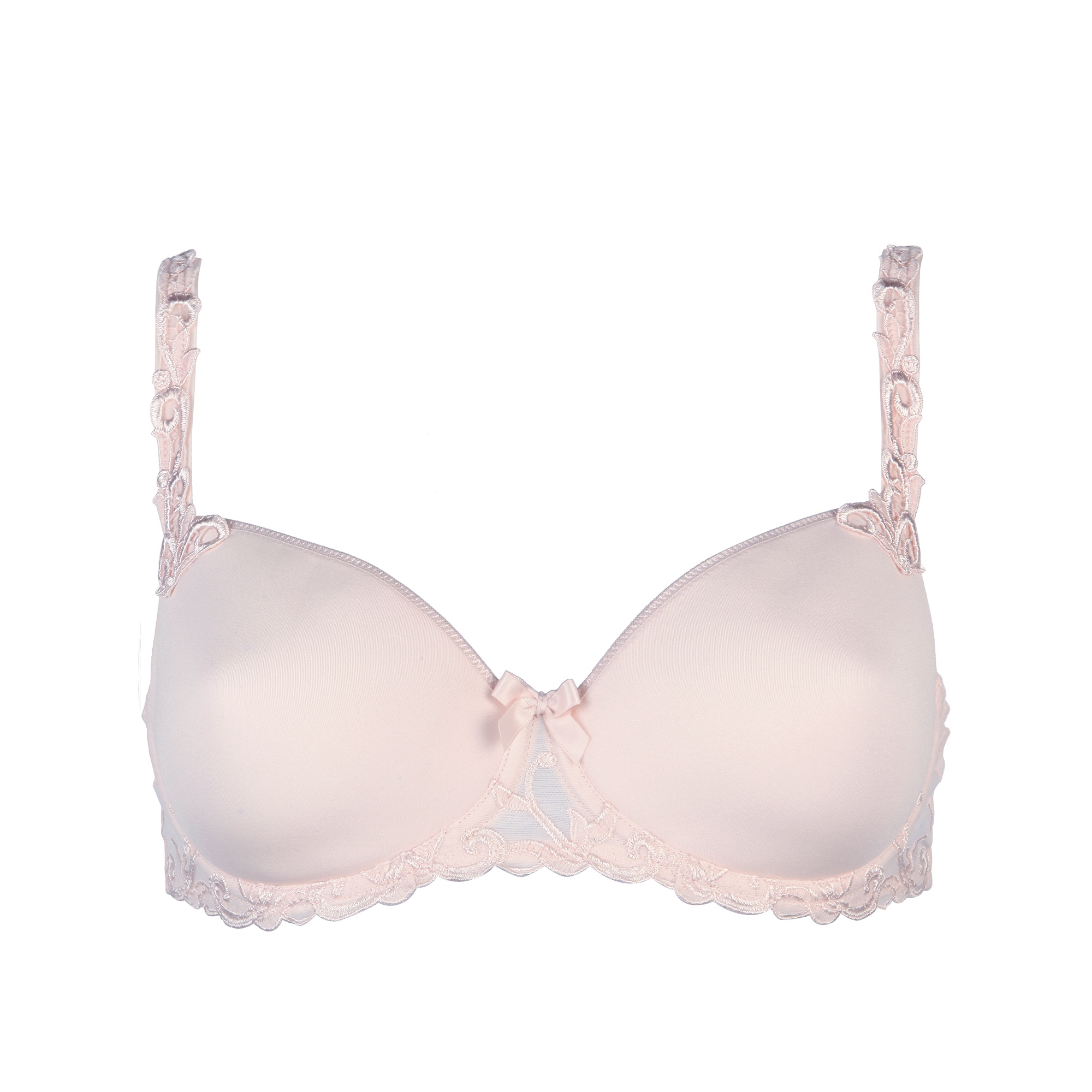 Balkonetový strih s vyšším stredom a nižšími košíčkami z prevratného materiálu 3D Spacer sa stane vašou druhou kožou. Tento strih nezväčšuje objem poprsia a vytvára prirodzený guľatý tvar.