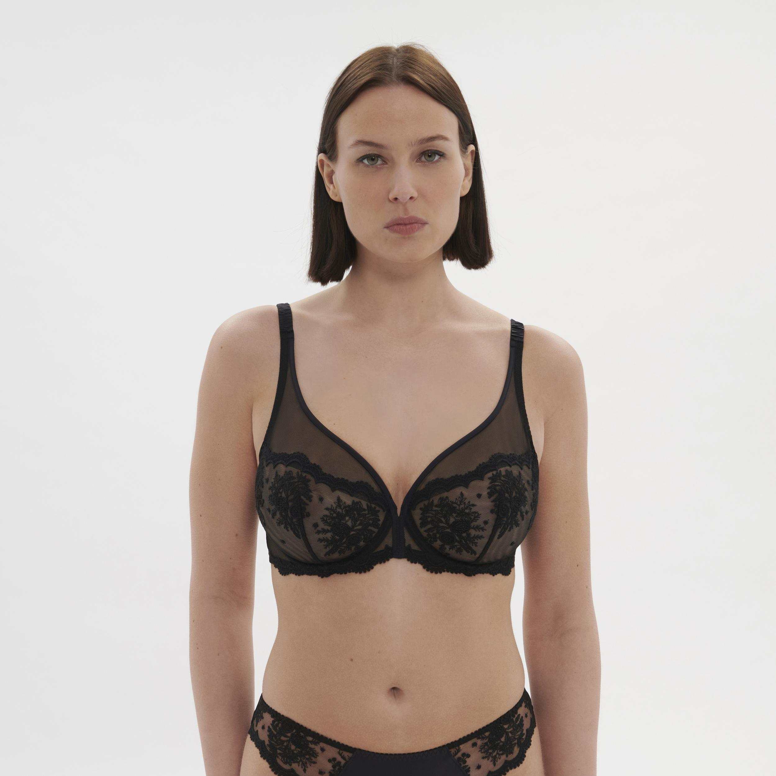 Podprsenka strihu vyšší balkonet z recyklovanej výšivky.