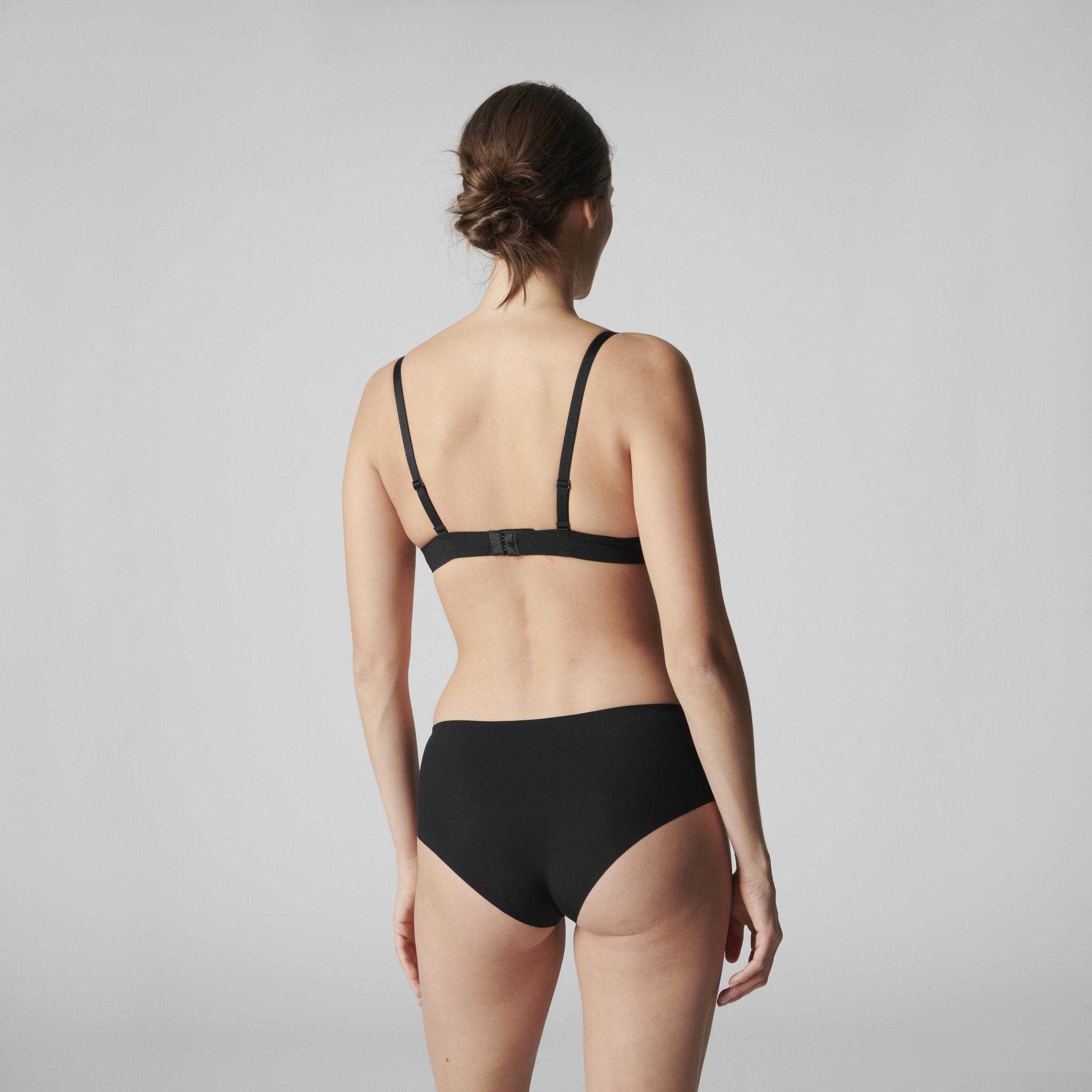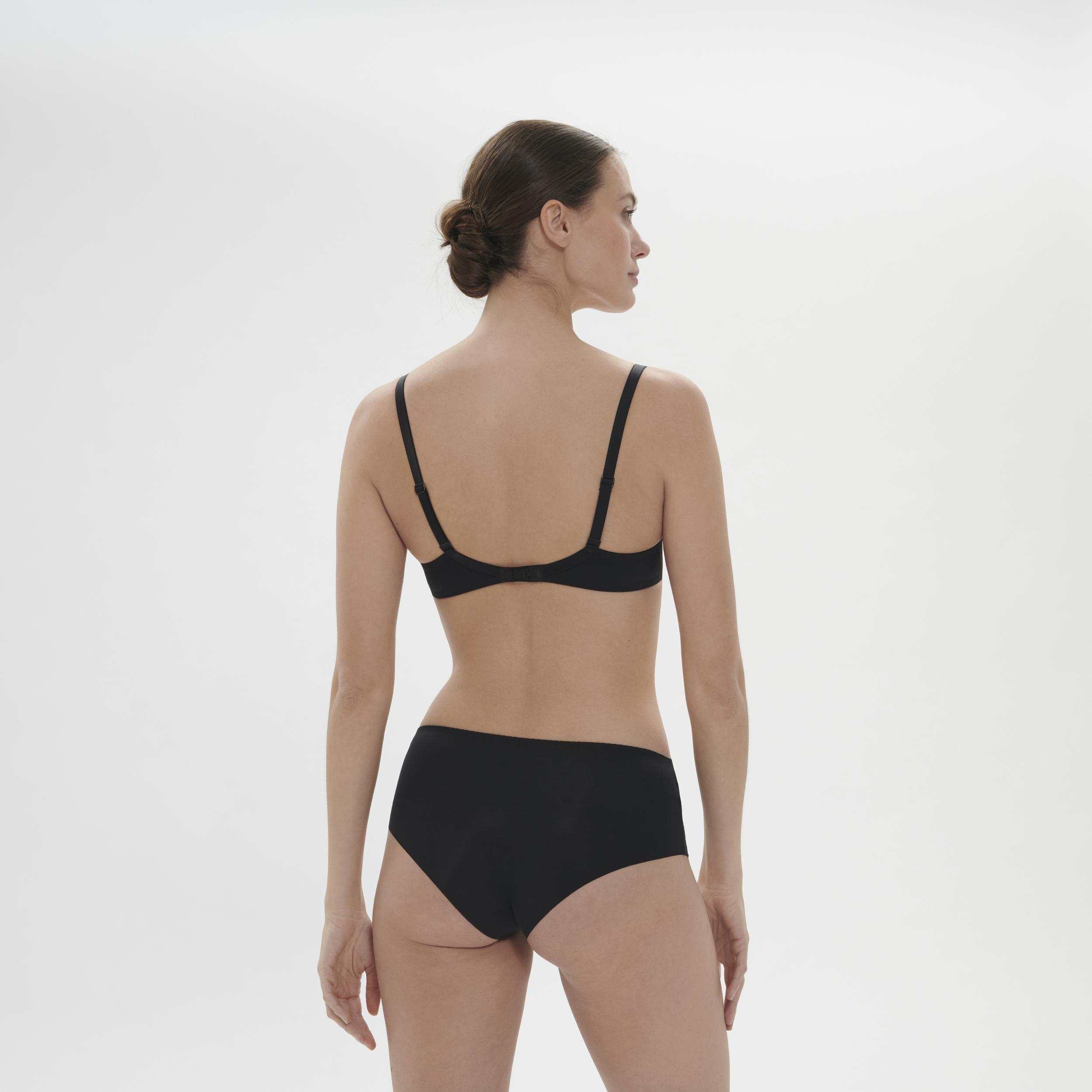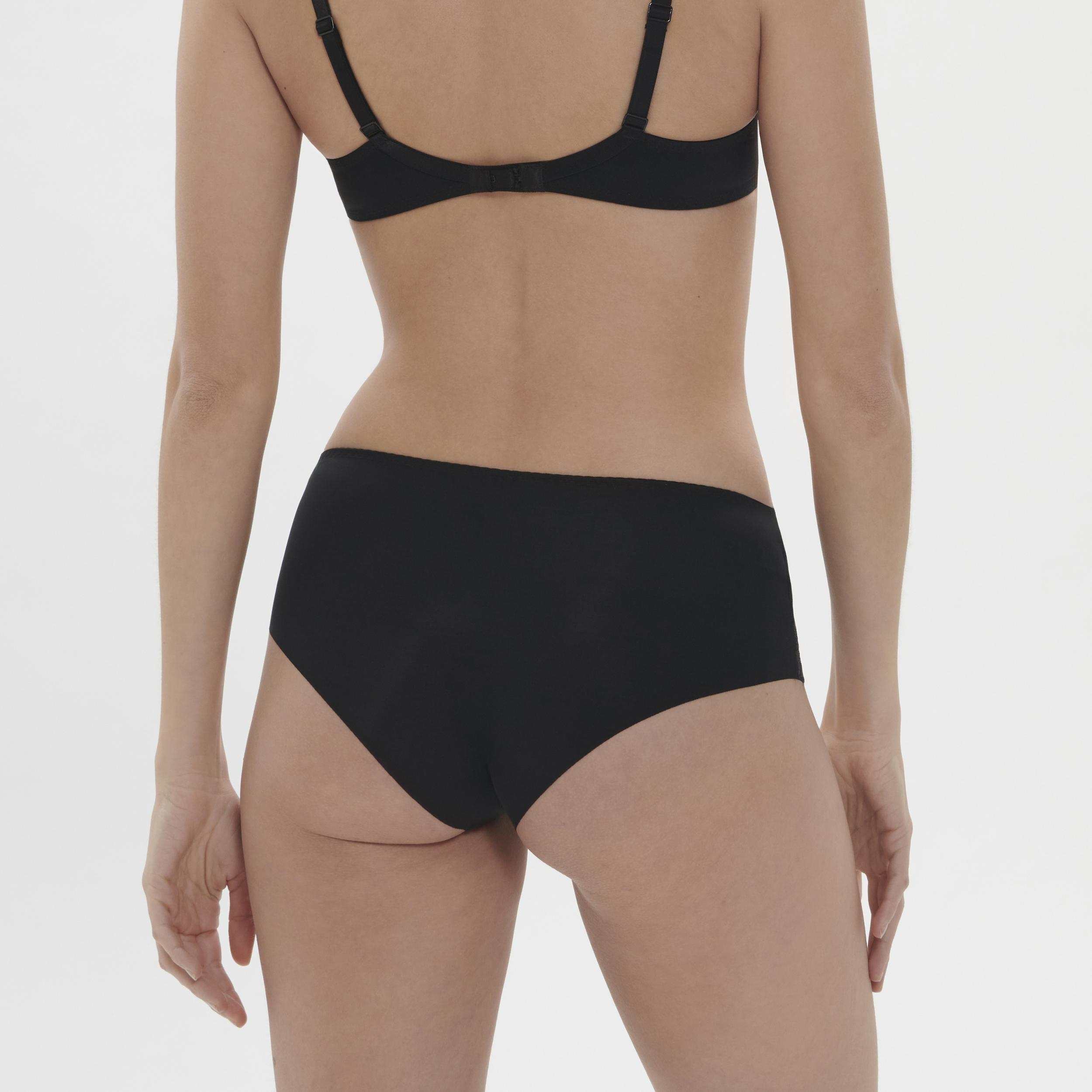 - Nepriehľadná zadná časť so sieťovinou a bezšvovým zakončením pre neviditeľnosť pod oblečením.