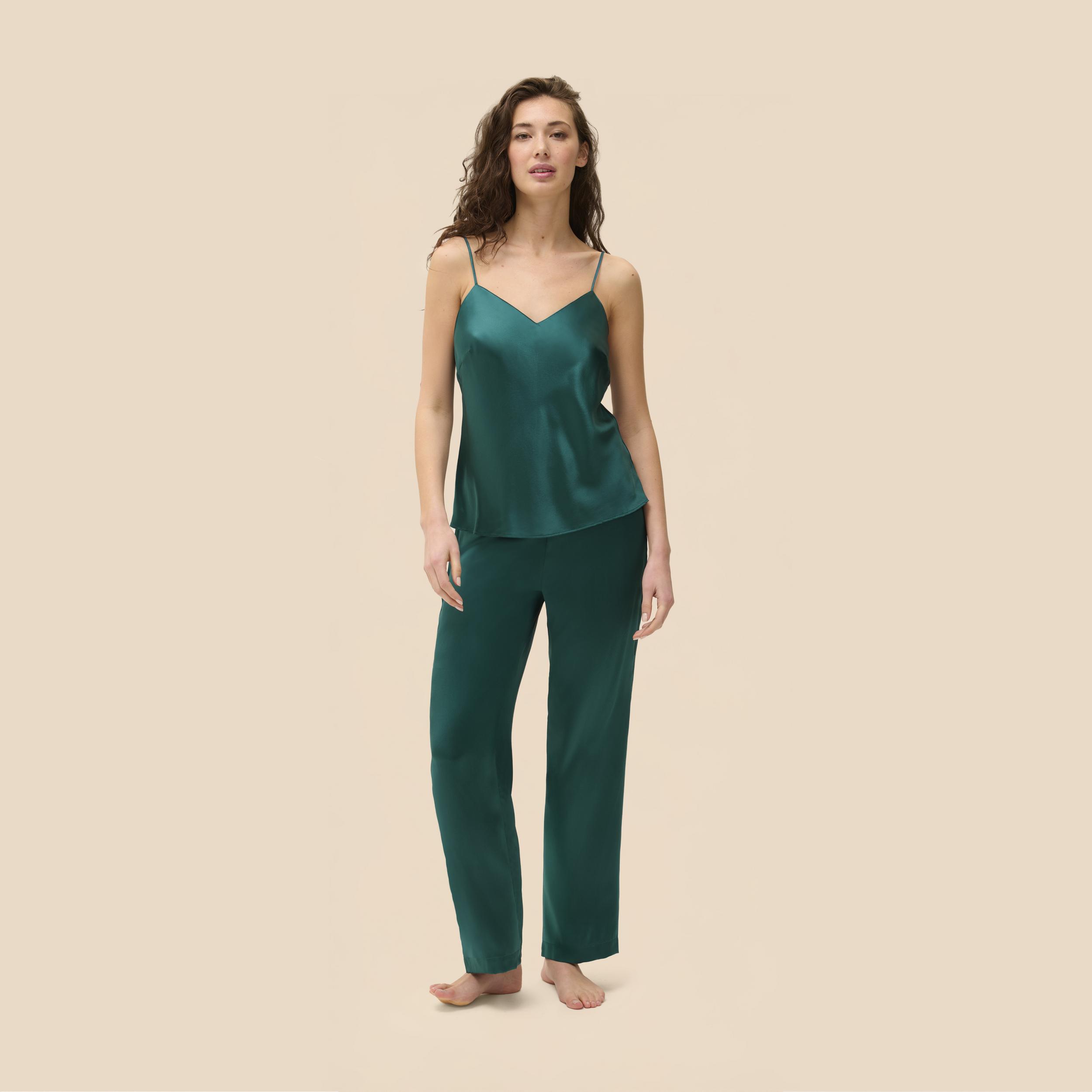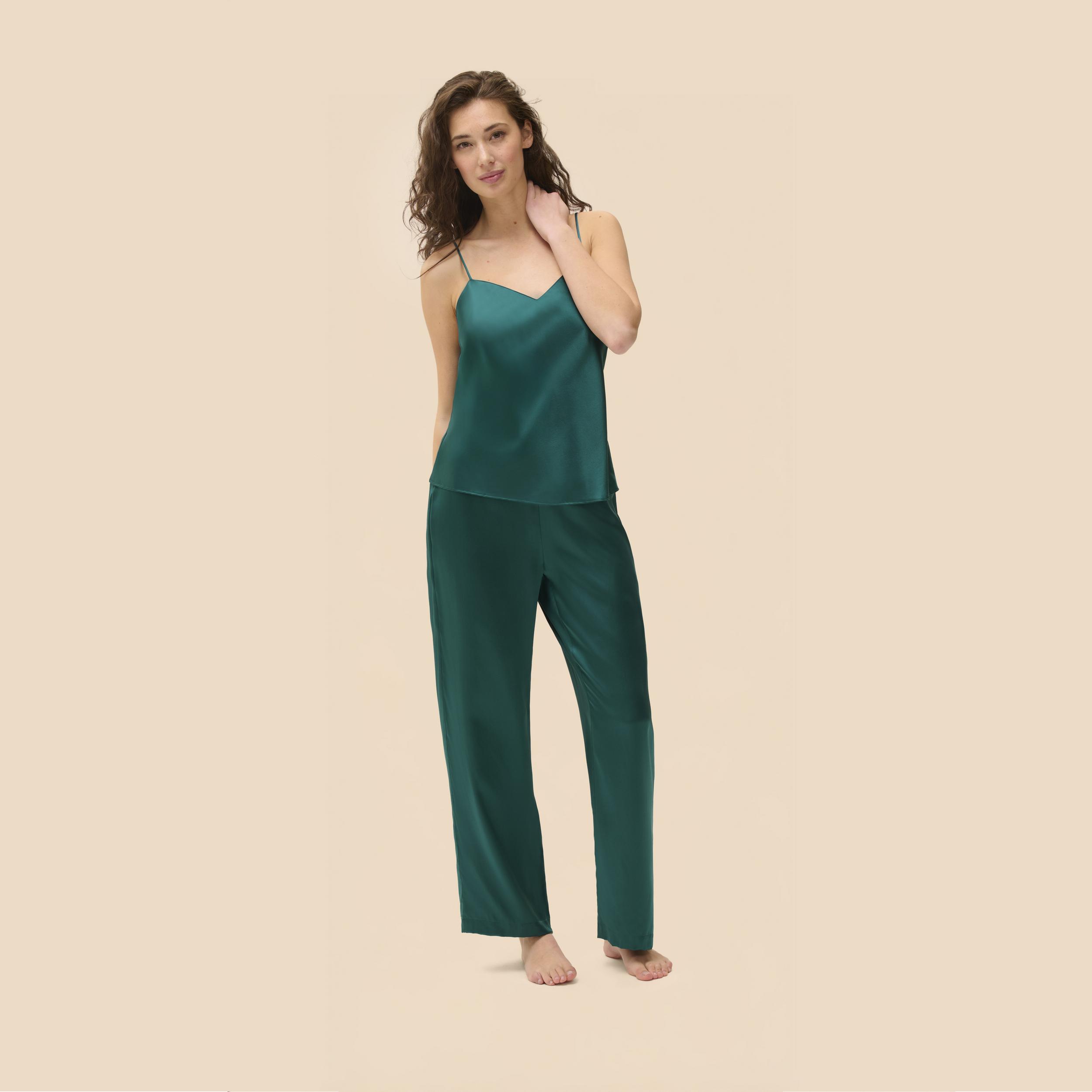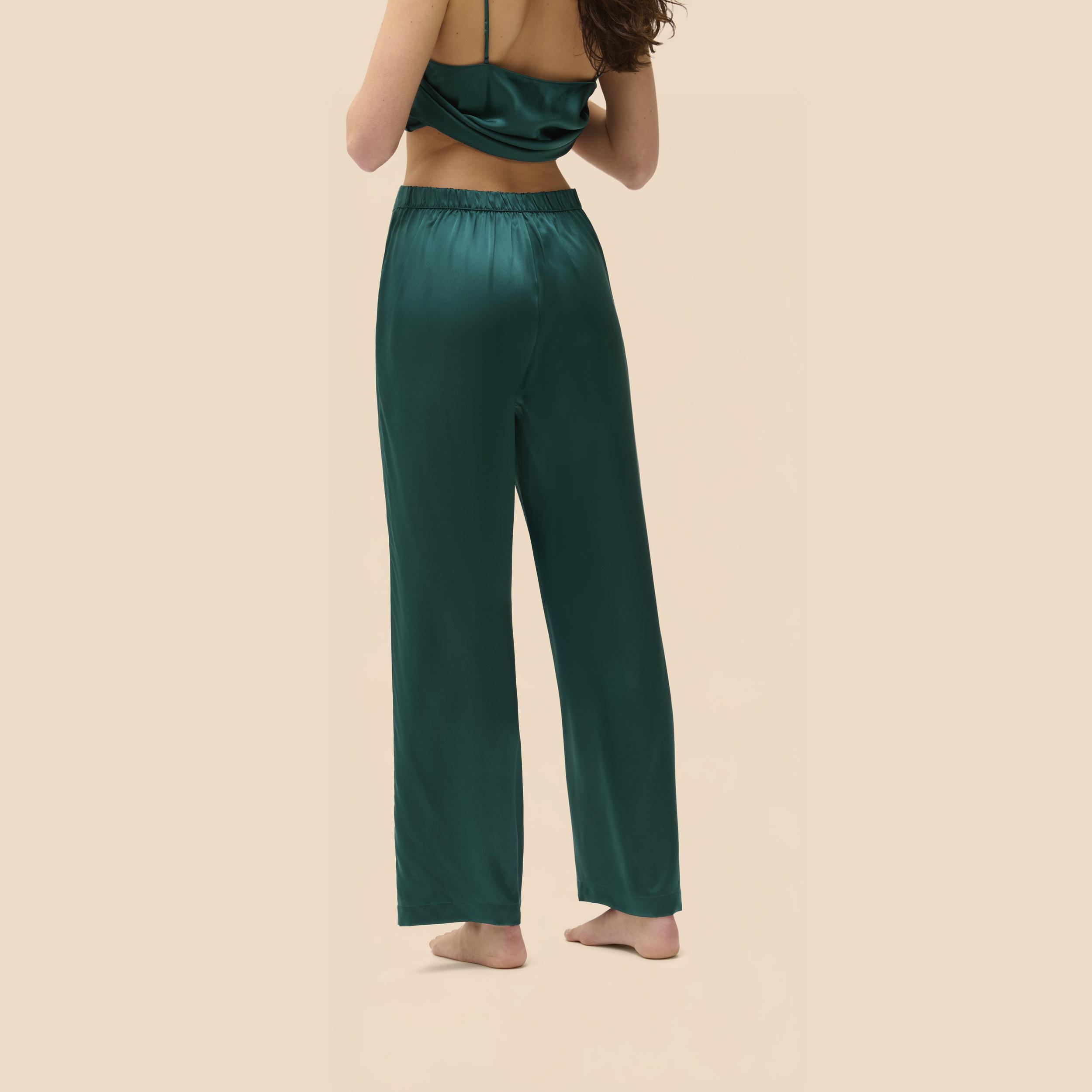 hodvábne nočné nohavice Love me vo farbe emerald