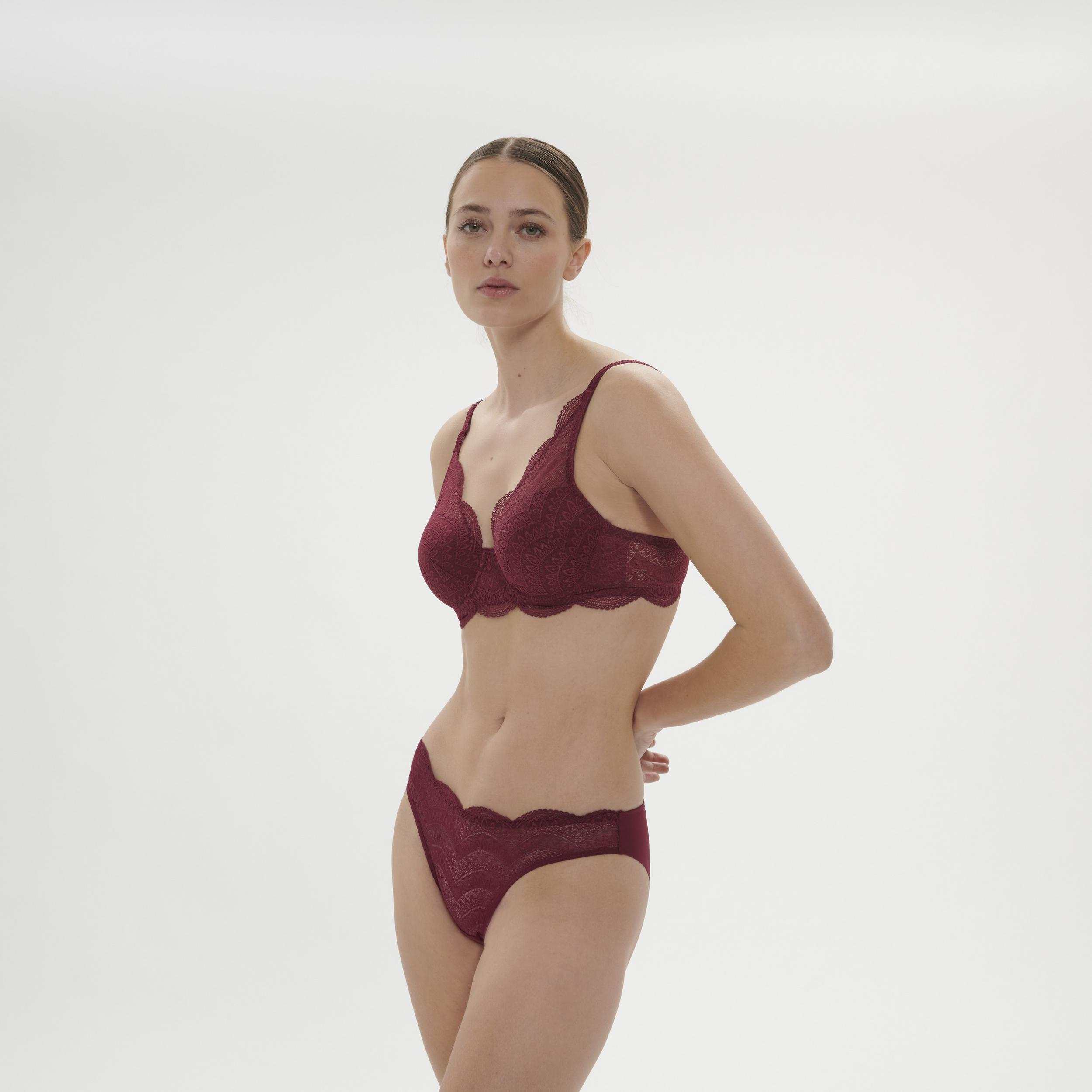 Střihy, které si zamilujete v božsky jemné strečové krajce, která se dokonale přizpůsobí vašim křivkám. Efektní vroubkovaný lem přiléhá k vaší kůži a pod oblečením je neviditelný. Zažijte nekonečný komfort s kolekcí Karma.
