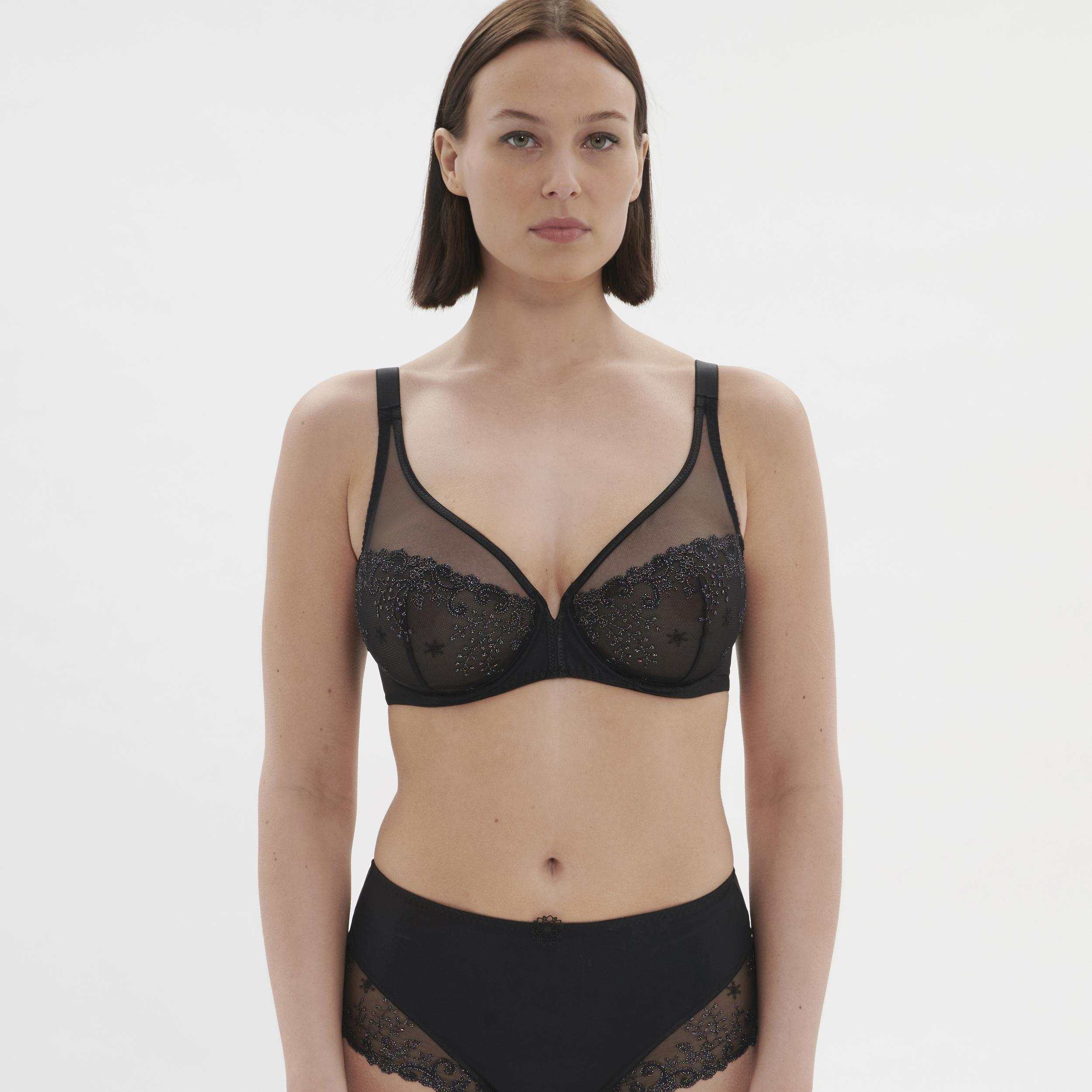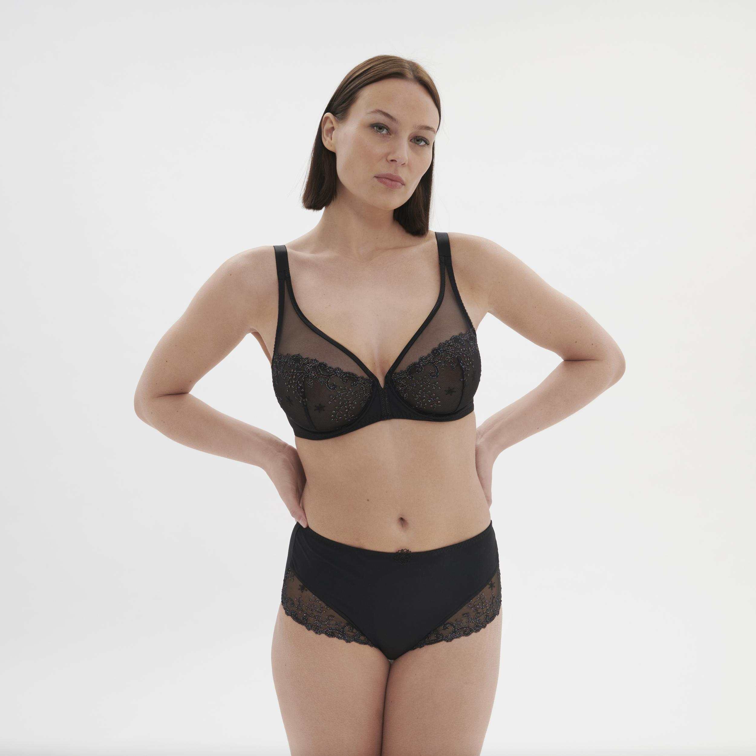 Nevystužená podprsenka trojuholníkového strihu s nízkym stredom vytvára krásny dekolt. Kombinuje dokonale tvarujúci balkonet s pohodlím vyššej podprsenky. A navyše vyzerá na tele fantasticky.